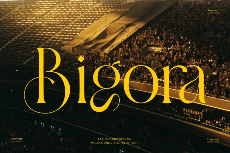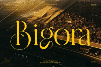 Bigora Serif is a modern and classy font type for all branding and logo designs. This modern and classy Serif font has a beautiful character. This font is suitable for invitation card designs, cool logos, movie titles, movie names, business cards, book titles, brand names, and various other designs. Bigora Serif is a smooth serif font that exudes sophistication and the moment. Its stylish ligatures make this font a perfect partner for any project.